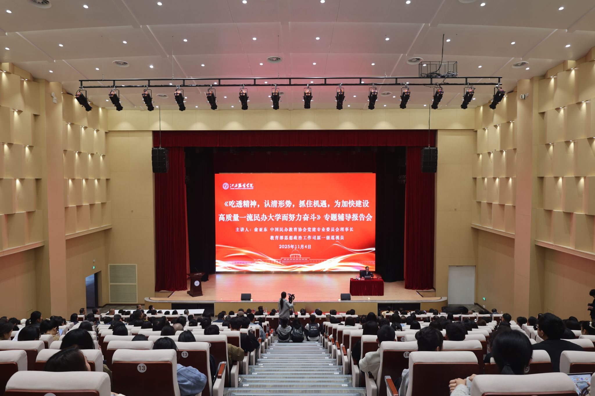 新闻中心讯(文/龙瑞行 图/徐志勇 樊翔)11月4日,中国民办教育协会党建专业委员会理事长、教育部思想政治工作司原一级巡视员俞亚东应邀来best365中国官方网站作专题辅导报告。校党委书记林井萍主持报告会,全体在家校领导、科级以上干部、教研室主任、专兼职党务工作者、思政课教师、专兼职辅导员及师生代表共400余人聆听了报告。