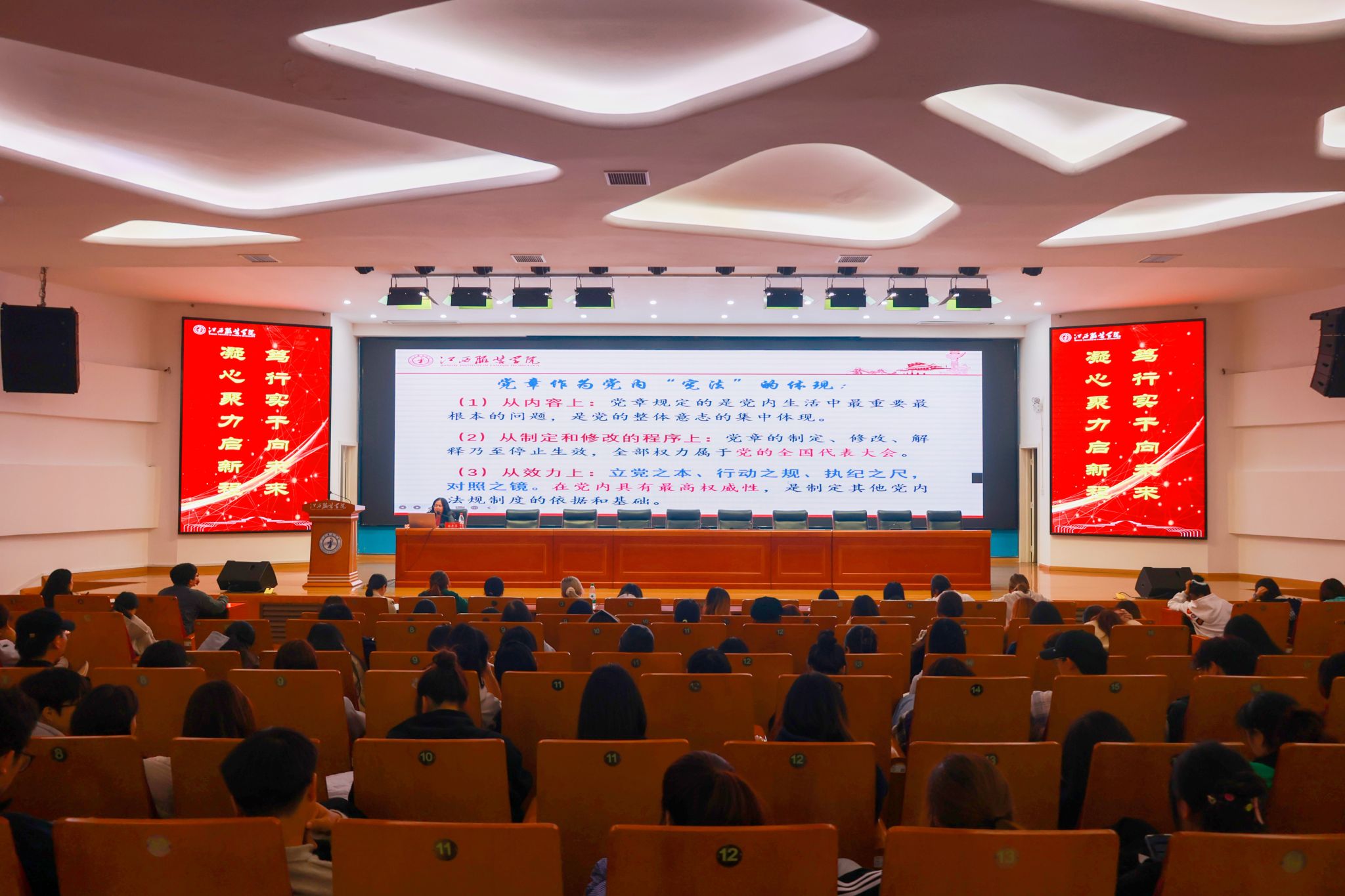 新闻中心讯(供稿/ 党委组织部)为深入学习贯彻党的二十届四中全会精神,提升入党积极分子的政治素养和党性修养,进一步增强纪律意识、规矩意识,引导广大入党积极分子自觉学习党章、尊崇党章、遵守党章、维护党章,11月12日晚,校党委书记林井萍在思贤楼报告厅以“学习贯彻党章 争当合格党员”为题,为党委党校第四十期入党积极分子带来一堂意义深刻的专题党课。