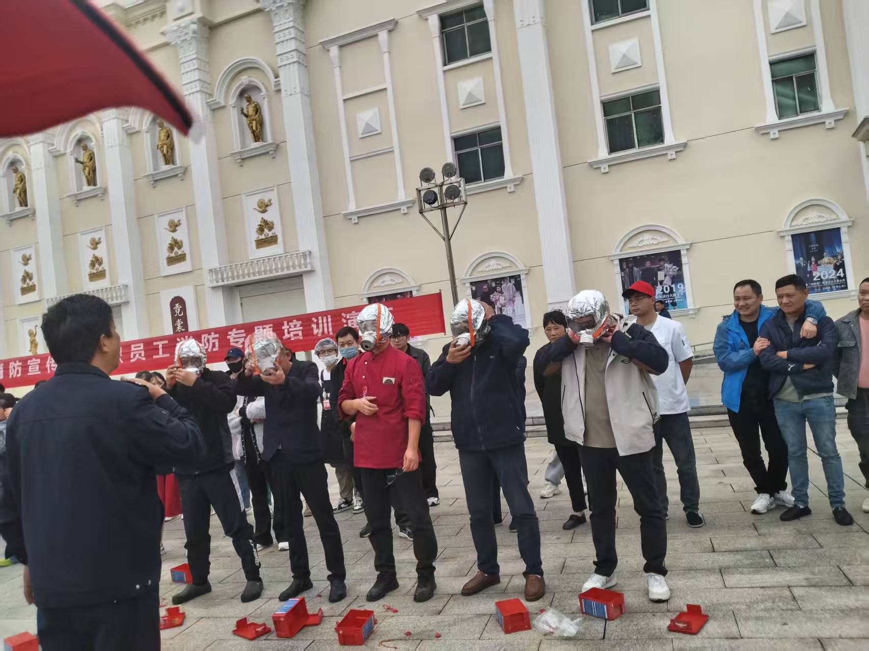 “水带展开务必平顺,接口卡扣一定拧紧到位!”实训现场,指导老师一边演示,一边细致讲解每个动作要领——从防毒面罩佩戴前的密封检查,到灭火器对准火焰根部的精准喷射,再到消防水带的快速铺设与连接。参训人员从初次尝试的略显生疏,到逐渐掌握核心技巧,在亲手操作中切实提升了扑救初起火灾、组织疏散逃生等实战能力。一位参与实训的老师深有感触地说:“只有亲手操作一遍,才能把知识转化为本能反应,这才是真正的‘安全肌肉记忆’。”