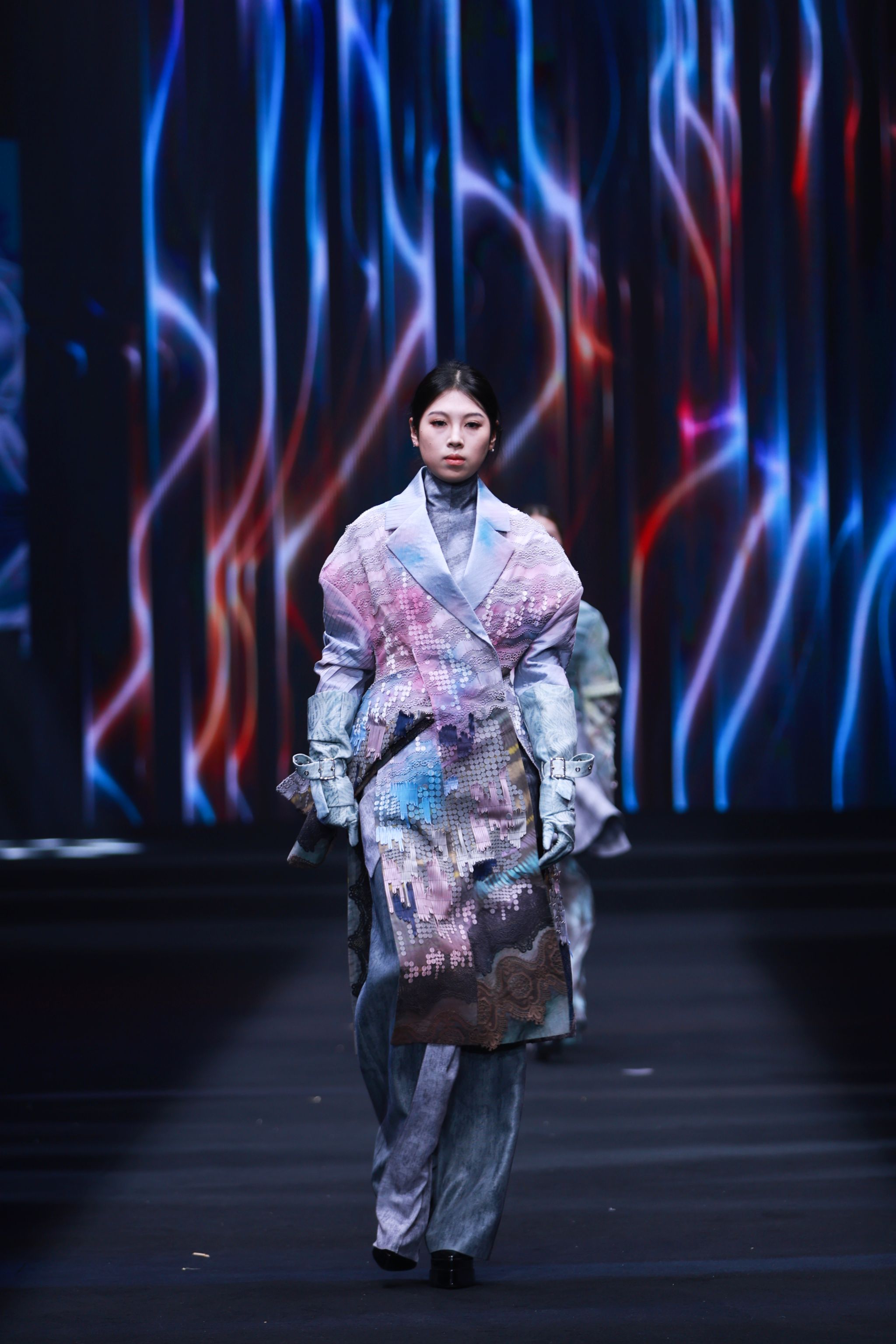 2025“润华奖”一带一路大学生时装设计与技能大赛旨在开创现代时尚服饰设计新局面,引领服装设计时代新潮流,“以赛促教、以赛促学”,推动服装教育改革创新发展,发掘、培育当代设计师,以新锐、前卫的全新服饰设计理念和话语,推动服装产业特色化、产业化、国际化发展。来自全球60多所国内院校及14个国家的30余所海外高校的设计新锐齐聚一堂,以“和”为灵感,用创意编织时尚丝路。30组入围决赛的佳作轮番登台,最终决出金奖,为这场国际化、高水准的时尚盛宴画上圆满句点。