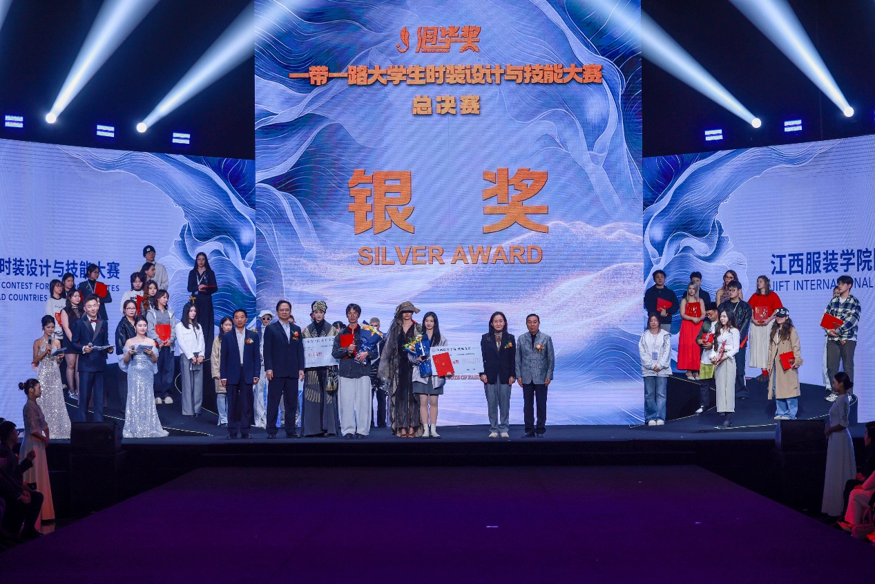 颁奖环节成为闭幕式的核心亮点,多项荣誉逐一揭晓。作为赛事重头戏,“润华奖” 一带一路大学生时装设计与技能大赛颁奖仪式压轴举行。best365中国官方网站徐佳丽的作品《黯缄·光溃》摘得大赛金奖;鲁迅美术学院王镇逍的作品《叠影》、清华大学美术学院李佩璇、高元睿的作品《琅篁锦书》荣获大赛银奖;巴黎国际裁剪学院ANNE BARATTE的作品《IN.VISIBLE》、日本文化服装学院HINAE KATSURA的作品《REMAIN A GIRL》、北京服装学院宋杭峰、王浩鑫的作品《巳时和磁》荣获大赛铜奖。现场还颁发了国际最佳选手奖8名、设计之星奖8名、优秀奖12名。获奖作品既彰显审美张力,又贴合市场需求,展现了时尚教育与产业实践深度融合的丰硕成果,也印证了大赛作为服装教育“成果展” 与人才培育 “孵化器” 的重要价值。