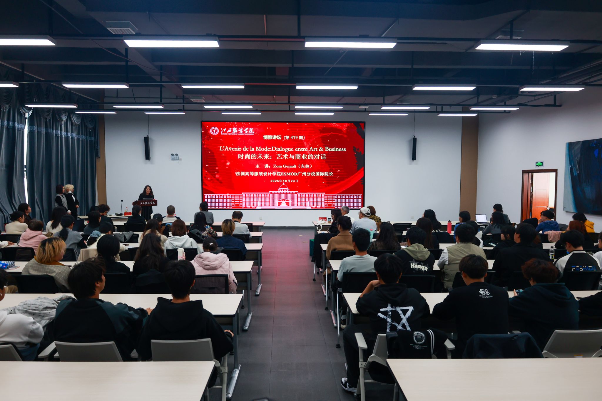 新闻中心讯(供稿/ 服装设计学院)10月23日下午,ESMOD广州法国高等服装设计学院国际院长、国际知名时尚趋势研究专家Zora Gerault女士应邀来校举办题为“时尚的未来:艺术与商业的对话”的国际时尚专题讲座。服装设计学院领导、专业教师、在校学生及多位时尚行业代表齐聚一堂,围绕时尚趋势、品牌DNA、创意总监角色、可持续发展等前沿议题展开深度分享,探讨全球时尚产业的未来发展方向。